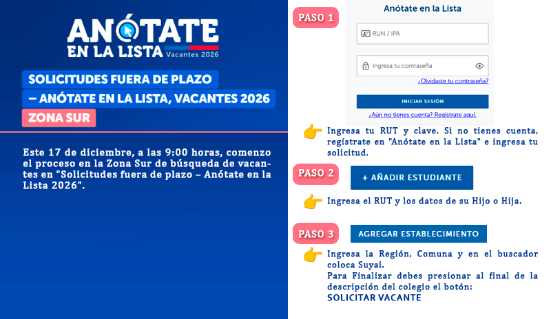 👉 Puedes postular de forma simple a través del Sistema de Admisión Escolar en [anótate en la lista].