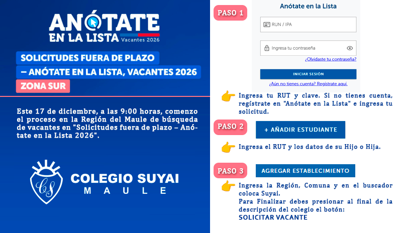 👉 Puedes postular de forma simple a través del Sistema de Admisión Escolar en [anótate en la lista].